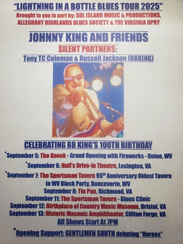 Blues Royalty in the form of "Johnny King and Friends" featuring Drummer, Tony "TC" Coleman and Bassist Russell Jackson, the former rhythm section of the legendary BB King.